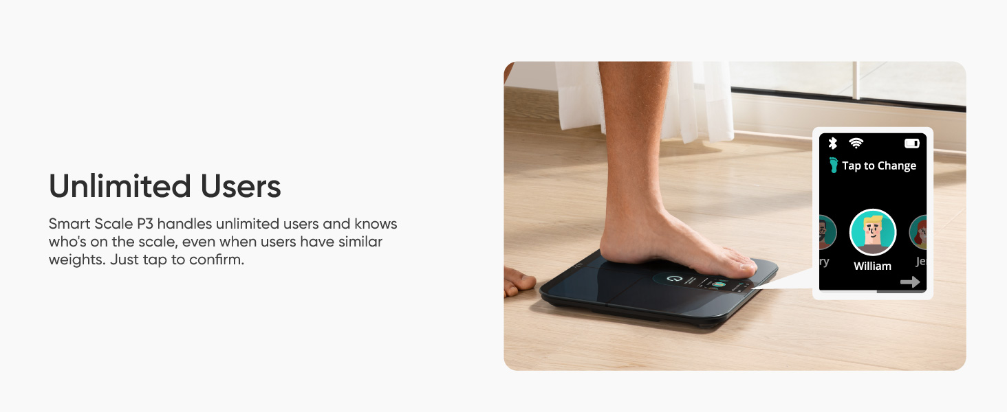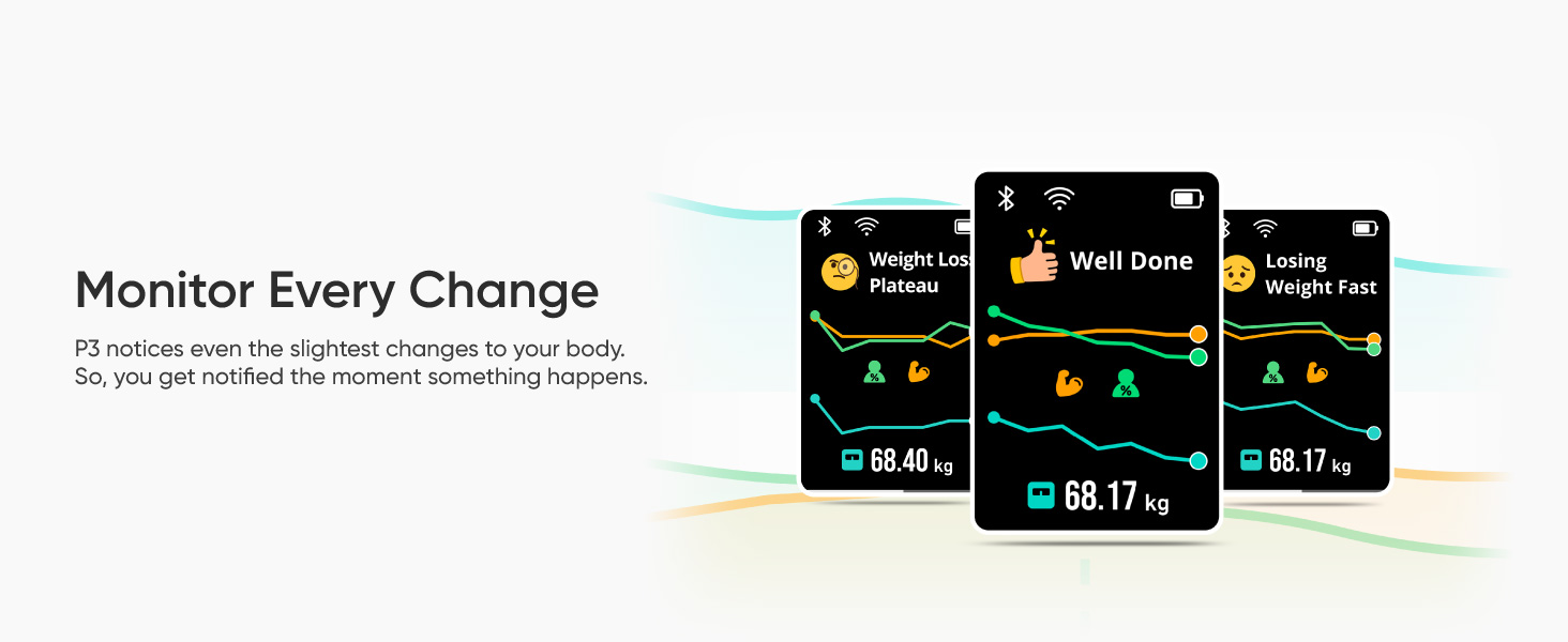- The Smart Scale P3 helps you stay on track by calculating your weight, body fat, and muscle to tailor the right fitness plan.