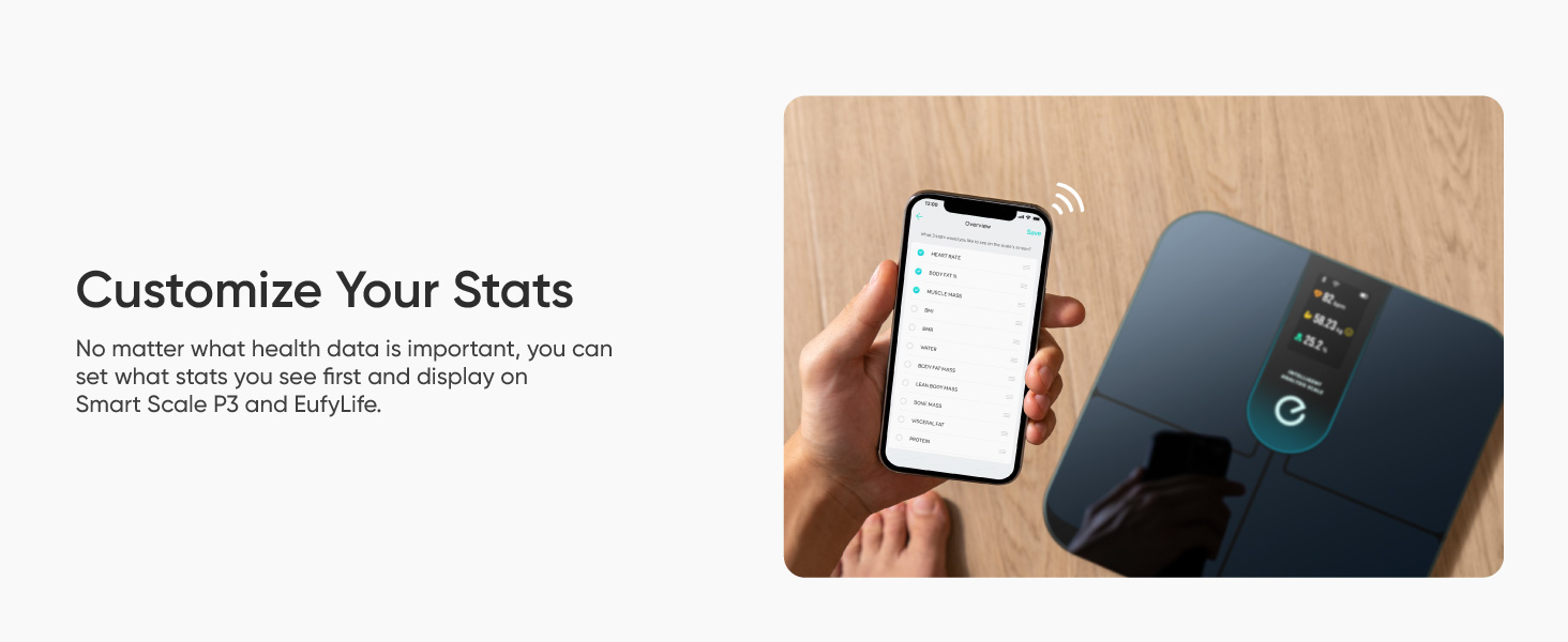 - Set your preferred body data and display location on the Smart Scale P3 and EufyLife app.