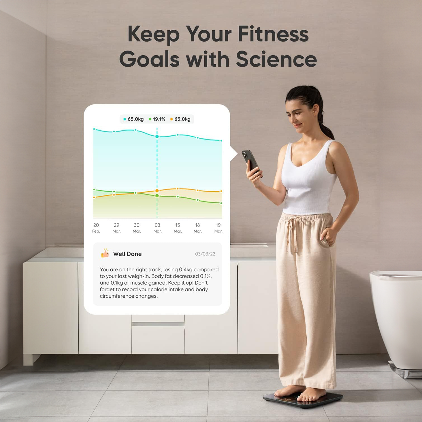 Setting up the scale was a breeze. The app guided me through each step, and within minutes, I was ready to go. The Wi-Fi and Bluetooth connectivity work seamlessly, ensuring that my data is always up-to-date and synced across my devices. I love the convenience of tracking my progress in real-time.