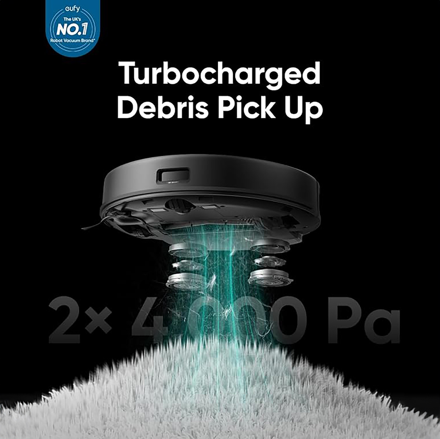 It didn’t take long for me to notice the unreal suction power of this eufy model . It knows to adjust the suction power depending on the surface and the amount of dust , hair and debris . Once it has some of my long hair trapped in the brush it will automatically clean the brush and I couldn’t believe how efficiently eufy did that .