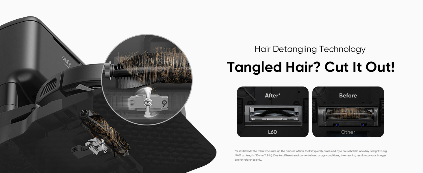 - The Self-Empty Stationās Hair Detangling technology effortlessly slices through hair wrapped around the roller brush, eliminating the need for manual removal.