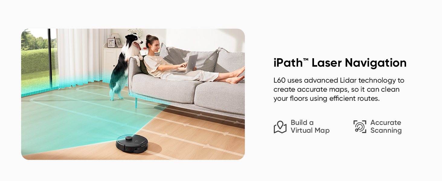 - iPath Laser Navigation utilizes advanced Lidar technology to scan and map your rooms, resulting in precise and efficient cleaning routes.