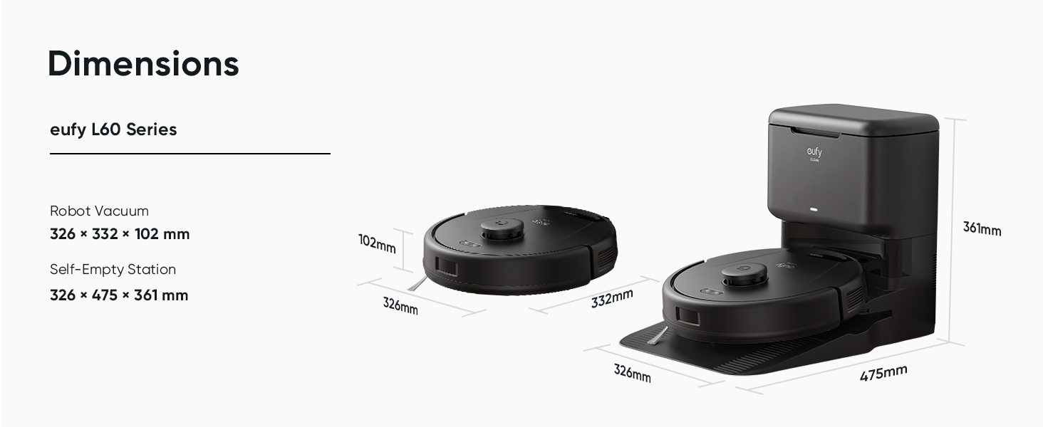 The eufy L60 SES is sleek and modern, with a low-profile design that allows it to slip under furniture effortlessly. Its matte black finish gives it a premium look, and the overall build quality feels solid and durable. I appreciate the minimalistic design, which doesn't scream "tech gadget" but still looks like a high-end appliance.