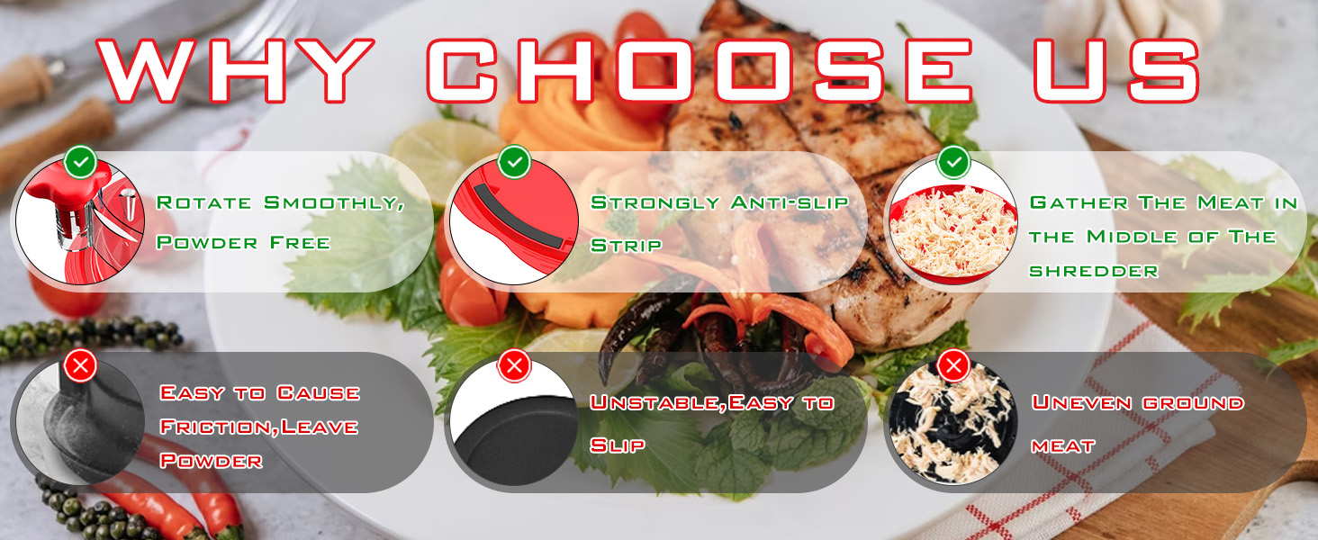- Ideal for shredding chicken, pork, beef, vegetables, and pet food.
